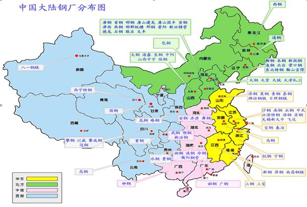 中国大陆钢厂分布图